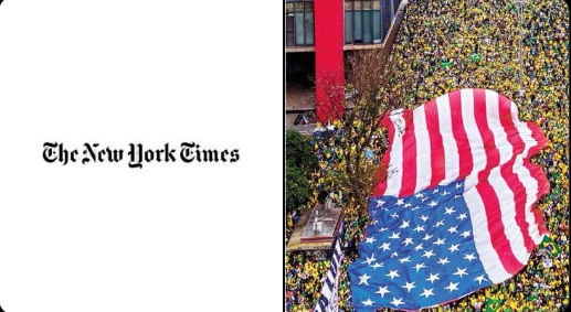 De acordo com o NYT, milhares de brasileiros foram às ruas em cidades como São Paulo, Rio de Janeiro e Brasília para protestos políticos majoritariamente pacíficos.