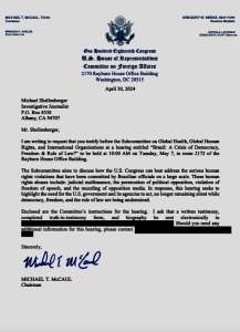 A Comissão de Assuntos Exteriores do 118º Congresso da Câmara dos Representantes dos Estados Unidos convoca uma audiência de suma importância com o Sr. Michael Shellemberger, agendada para terça-feira, 7 de maio, às 10:00 horas. O evento, intitulado “Brasil: uma crise de democracia, liberdade e império da lei?”, será realizado na sala 2172 do edifício Rayburn House.