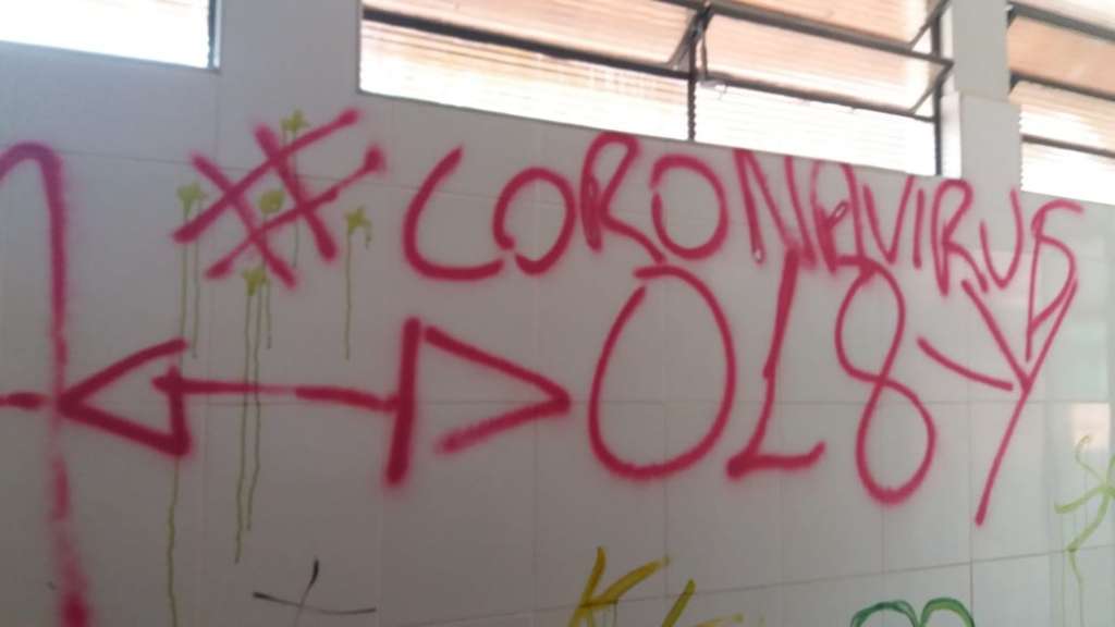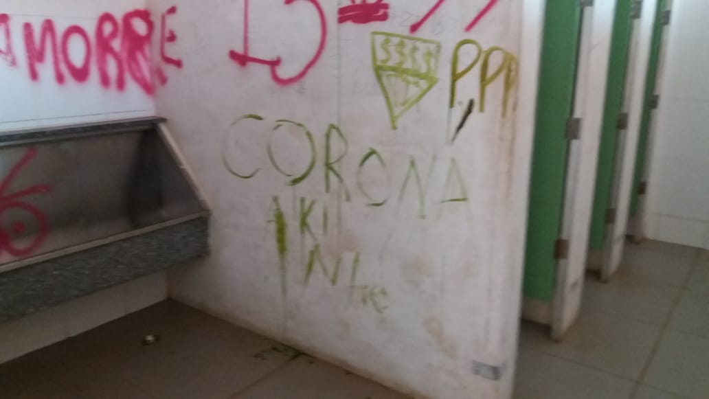 VÂNDALOS e DELINQUENTES invadiram e picharam, furtando, toda merenda escolar que estava na cozinha.