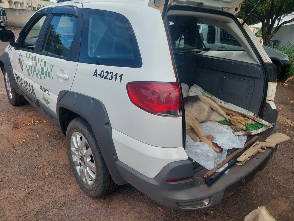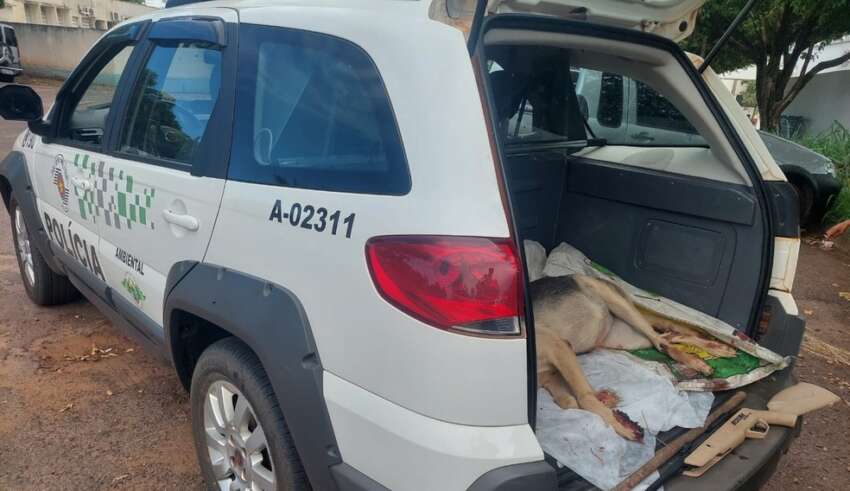 Familiares disseram à Polícia Ambiental que o envolvido ficou nervoso depois que a cadela comeu um pintinho. Caso também foi registrado na Polícia Civil e ele vai responder ao crime em liberdade.