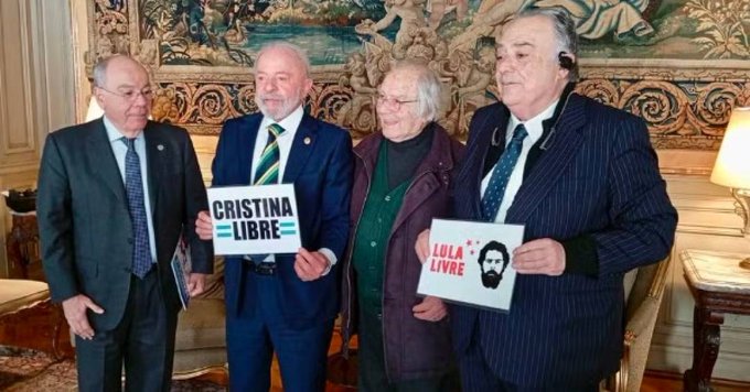 No entanto, Lula foi fotografado em Buenos Aires, durante o cume do Mercosul, segurando um cartaz com a frase “Cristina libre”, pedindo a libertação da ex-presidente argentina Cristina Kirchner, condenada por corrupção.