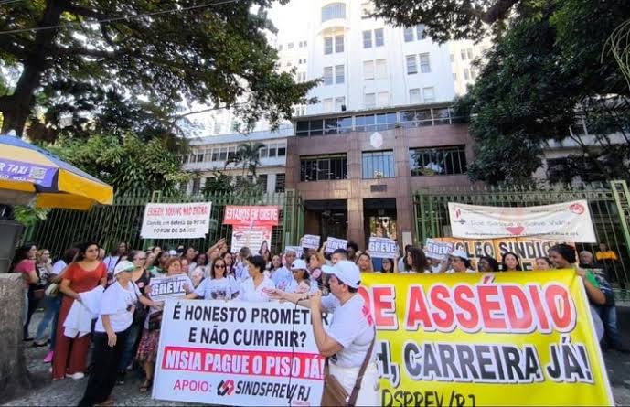 Em greve desde 15 de maio por decisão da categoria, servidores federais da Saúde no Rio de Janeiro protestam nesta segunda-feira (17/6) contra casos de assédio e desvio de função nas contratações de comissionados. A manifestação foi organizada pelo Sindicato dos Trabalhadores da Saúde, Previdência, Seguro Social e Assistência Social do Rio de Janeiro (Sindsprev/RJ).